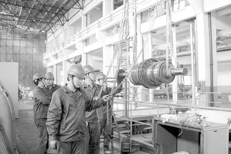 夏季用電高峰來臨之際,安徽新源熱電廠認(rèn)真做好設(shè)備、機(jī)組檢修工作,做好事故預(yù)想和事故預(yù)案,全力以赴打好“迎峰度夏”攻堅(jiān)戰(zhàn)。圖為技術(shù)人員檢修發(fā)電勵(lì)磁機(jī)轉(zhuǎn)子。 記者 柴光宇 通訊員 蒯平 蘇紅兵 攝