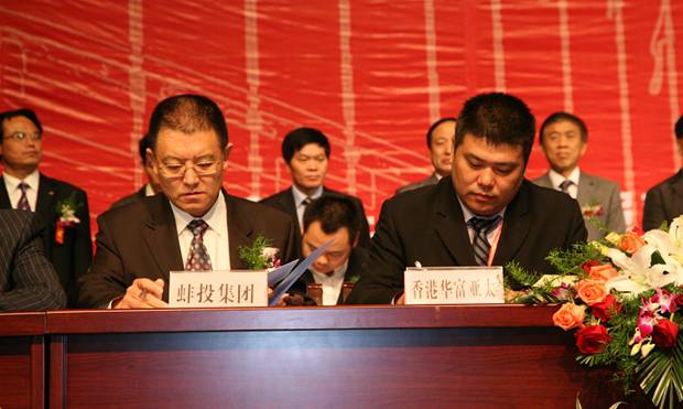 1018舉行的蚌埠投資環(huán)境說明會暨項目簽約儀式上,蚌埠投資集團(tuán)與五家外地投資者分別就五個項目達(dá)成合作協(xié)議并成功簽約。與香港華富亞太投資有限公司簽署高速鐵路蚌埠站站前廣場商業(yè)區(qū)經(jīng)營項目合作框架協(xié)議,與中通國華大豐投資有限公司簽署第四方物流項目合作框架協(xié)議,與中實化學(xué)技術(shù)有限公司簽署液晶材料及醫(yī)藥中間體項目合作協(xié)議書,與上海榮杉貿(mào)易發(fā)展有限公司簽署蚌埠中小企業(yè)信用擔(dān)保有限公司增資擴股合作協(xié)議,下屬熱電公司與南京鵬熙建材有限公司簽署工業(yè)物流園合作框架協(xié)議。五個項目中,高新技術(shù)項目2個,金融服務(wù)項目1個,商業(yè)服務(wù)項目1個,物流服務(wù)項目1個,總投資額18.5億元,引入外地資金12億元。