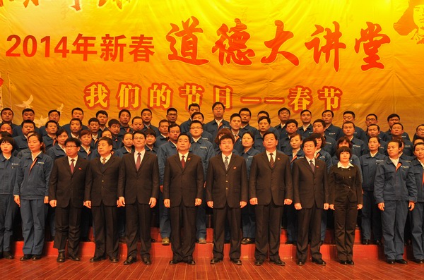 講堂上,首先由中環(huán)水務(wù)黨政班子成員和營業(yè)所員工大合唱《公民道德歌》。隨后講故事環(huán)節(jié)播放了感動中環(huán)水務(wù)的《天河應(yīng)急水源建設(shè)紀(jì)實(shí)》短片。在誦經(jīng)典環(huán)節(jié)中,誠信公司的《歡歡喜喜過大年》為我們講述了孝道,“小孝孝其身、中孝孝其心、大孝孝其志,至孝孝其慧”,生動的闡述、富有激情的表演獲得了在場陣陣掌聲。在學(xué)模范環(huán)節(jié)中,中國好人獲得者蚌埠公交集團(tuán)的107路車駕駛員楊苗苗、三級警監(jiān)、迎淮社區(qū)片警單修河到會,和與會人員暢談自己的內(nèi)心感受,使大家體會到只有踏實(shí)肯干、愛崗敬業(yè)才能贏得市民和社會的認(rèn)可,才能實(shí)現(xiàn)自我價值。