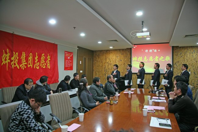 在談感悟環(huán)節(jié),主持人介紹了近期公司志愿者注冊(cè)登記工作開(kāi)展情況,宣布成立蚌投集團(tuán)志愿服務(wù)隊(duì)。在本環(huán)節(jié)中, 6名志愿者現(xiàn)場(chǎng)為大家?guī)?lái)了詩(shī)歌朗誦——《蚌投志愿者之歌》并莊嚴(yán)宣誓。