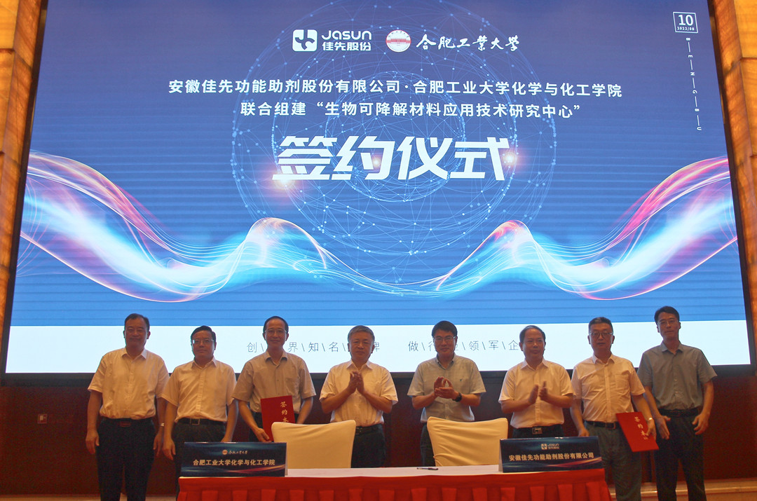 8月10日,安徽佳先功能助劑股份有限公司與合肥工業(yè)大學化學與化工學院聯(lián)合組建“生物可降解材料應用技術研究中...